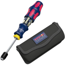Los juegos de la serie Kraftform Kompakt 20 son un fenómeno: disponen de una varilla telescópica depositable en el mango (que también se puede sacar y utilizar como porta-puntas en la máquina atornilladora) así como de un almacén de puntas integrado. La tecnología Rapidaptor garantiza un cambio de puntas ultrarrápido así como un manejo excelente durante la aplicación mecánica gracias al manguito de giro libre.
