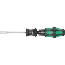 Una herramienta compacta con un mango multicomponente Kraftform para unas altas velocidades de trabajo y un trabajo en uniones atornilladas especialmente ergonómico. El mango lleva integrada una recámara de puntas con 6 puntas duras y resistentes para el uso universal. El porta-puntas lleva un potente imán permanente para un posicionamiento seguro de la punta.