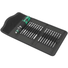 Frecuentemente el ususario tiene que utilizar una herramienta tanto de forma estacionaria en el puesto de trabajo como también de manera móvil en otros lugares. Además también es muy frecuente que durante el trabajo mismo haya que decidir si el trabajo en uniones atornilladas se ha de realizar de forma manual o mecánica. Gracias a los juegos de herramientas Kraftform Kompakt el usuario tan sólo necesita un único juego para ambas aplicaciones. Además los juegos están guardados en unos bolsos para el cinturón o en cajas plásticas de forma limpia y ordenada lo que es sumamente práctico para el transporte y el trabajo.