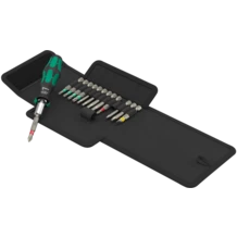 Juego de 14 piezas de destornillador con función carraca. Porta-puntas manual con una función de carraca que se puede manejar de manera intuitva. El hecho de poder trabajar con movimientos rotatorios rápidos acelera el trabajo. La mecánica de carraca que se encuentra integrada completamente en el mango, permite un trabajo muy práctico y descomplicado. Una conmutación ergonómica a la posición derecha/izquierda, o a la posición de 0. El mango Kraftform Plus permite un trabajo ergonómico agradable que evita la formación de ampollas y callosidades en las manos del usuario. Un porta-puntas magnético para puntas de arrastre hexagonal exterior de 1/4". 13 puntas resistentes y duras para el uso universal (ranura en cruz Phillips y Pozidriv, TORX®, hexágono interior y ranura), de un largo de 50 mm; lleva un niquelado químico, y el sistema de búsqueda rápida Take it easy: marcas a color en la salida y sellos según el tamaño, para encontrar la herramienta deseada fácilmente.