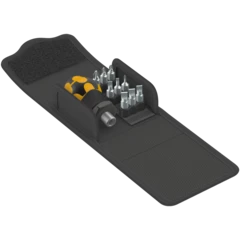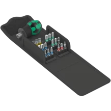 Sistema de mango y varillas intercambiables para un cambio superrápido de la varilla precisa. Un mango porta-puntas especialmente corto con una varilla corta para áreas de difícil acceso. Adecuado para la toma de puntas con arrastre de hexágono exterior según la norma DIN ISO 1173-C 6,3 y la serie de conexión de Wera 1. Con un imán fuerte y permanente que también es capaz de sostener tornillos grandes y pesados. El mango bicomponente tipo Kraftform con su práctica combinación de zonas duras y zonas blandas permite un agarre fijo y un trabajo muy preciso. Las puntas BiTorsion de alta calidad llevan una zona BiTorsion que evita que el extremo de la punta se tuerza en situaciones de cargas muy altas. De esta forma aumenta la vida útil de la herramienta de manera importante. El estuche es compacto y de material textil, muy robusto, pero ligero y ocupa poco volumen. Es adecuado para conectarlo con el sistema de transporte Wera 2go.