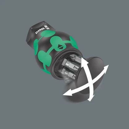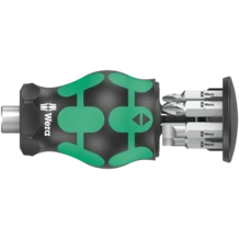 Un destornillador porta-puntas particularmente pequeño y corto para las zonas de difícil acceso. Incluye 6 puntas, que se almacenan en la recámara del mango. Con una longitud total de sólo 65 mm, el Kraftform Kompakt Stubby es un verdadero mini taller de atornillado. El potente imán en el receptáculo de la punta asegura que esta se mantenga sujeta. El mango Kraftform bicomponente con su práctica combinación de zonas duras y blandas permite un agarre firme y un trabajo preciso. Sistema de búsqueda Take it easy: los distintos colores para cada perfil y el marcado del tamaño permiten diferenciar las puntas de forma sencilla.