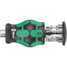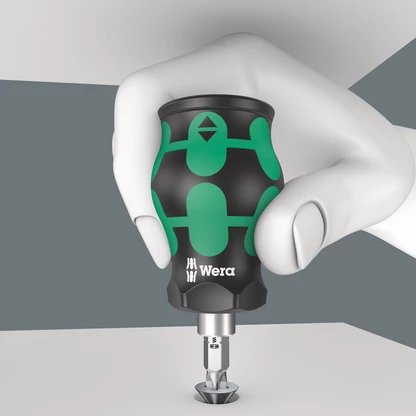 Un destornillador porta-puntas particularmente pequeño y corto para las zonas de difícil acceso. Incluye 6 puntas, que se almacenan en la recámara del mango. Con una longitud total de sólo 65 mm, el Kraftform Kompakt Stubby es un verdadero mini taller de atornillado. El potente imán en el receptáculo de la punta asegura que esta se mantenga sujeta. El mango Kraftform bicomponente con su práctica combinación de zonas duras y blandas permite un agarre firme y un trabajo preciso. Puntas duras y resistentes, especialmente adecuadas para atornillar materiales duros como chapas o metales.