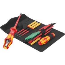 Muchos usuarios desean poder realizar trabajos de atornillar más rápidamente sin tener que aceptar desventajas. Con un destornillador que atornille de forma precisa, que también permita un apriete final fuerte, y que además sea mucho más rápido que los destornilladores comunes. La solución es un mecanismo planetario conectable: si se inegra en el mango del destornillador, es capaz de cuadruplicar la velocidad en trabajos ligeros de atornillar de manera meramente mecánica. Con una mano se fija la parte delantera del mango, con la otra mano se gira la parte posterior del mango. Esta función de "turbo" se puede conectar o desconectar tal como se quiera por medio de un pulsador. La desconexión es recomendable cuando se trata de apretar o soltar con un par de giro alto, así como en el caso de ajustes de precisión. Se trata de un mecanismo robusto, libre de mantenimiento, de acero, con un par de giro máximo de 14 Nm cuando la función de "turbo" está desconectada. En la versión VDE, el porta-puntas Kraftform Turbo 827 T i, junto las varillas intercambiables VDE de Wera, que han sido probadas en un 100 % según IEC 60900, garantiza un trabajo rápido y seguro, también bajo tensión eléctrica (hasta 1.000 voltios). Las varillas intercambiables VDE llevan el sistema de búsqueda de herramientas Take it easy con marcas a color según el tamaño - para encontrar la herramienta precisa de manera fácil y rápida. Vienen en un bolso robusto para el cinturón. En la parte posterior, este bolso de material textil dispone de una zona autoadhesiva esponjosa. Por medio de la cinta autoadhesiva que viene con el producto, el bolso textil se puede conectar con los componentes de Wera 2go. Pero también es posible fijarlo en la pared, la estantería o el carro de herramientas del taller.