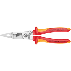- Alicate multifuncional para instalaciones eléctricas: cortar cables, pelar cables, agarrar, torcer, desbarbar y crimpar virolas