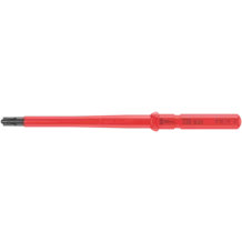 Varilla VDE para el sistema de cambio de mango y varillas intercambiables Kraftform Kompakt. Un perfil combinado de ranura y Phillips, ante todo adecuado para el uso con bornes en línea, armarios de distribución, conmutadores, relés. Un cambio ultrarrápido de la varilla sin herramienta especial. Las herramientas han sido probadas en un 100 % según IEC 60900. La prueba individual se realiza bajo una tensión de 10.000 V para asegurar un trabajo seguro bajo la tensión permitida de 1.000 V. El extremo tipo Black Point de Wera ofrece gran exactitud de encaje y una protección anticorrosiva optimizada. Lleva el sistema de búsqueda de herramientas Take it easy: con marcas a color según el perfil e indicaciones del tamaño grabadas con láser. El sistema de protección antirrodamiento mediante un hexágono evita que el útil se ruede de forma indeseada durante el trabajo.