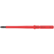 Varilla VDE para el sistema de cambio de mango y varillas intercambiables Kraftform Kompakt. Un cambio ultrarrápido de la varilla sin herramienta especial. Las herramientas han sido probadas en un 100 % según IEC 60900. La prueba individual se realiza bajo una tensión de 10.000 V para asegurar un trabajo seguro bajo la tensión permitida de 1.000 V. El extremo tipo Black Point de Wera ofrece exactitud de encaje y una protección anticorrosiva optimizada. Lleva el sistema de búsqueda de herramientas Take it easy: con marcas a color según el perfil e indicaciones del tamaño grabadas con láser. El sistema de protección antirrodamiento mediante un hexágono evita que el útil se ruede de forma indeseada durante el trabajo.