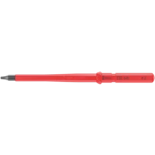 Varilla VDE para el sistema de cambio de mango y varillas intercambiables Kraftform Kompakt. Un cambio ultrarrápido de la varilla sin herramienta especial. Las herramientas han sido probadas en un 100 % según IEC 60900. La prueba individual se realiza bajo una tensión de 10.000 V para asegurar un trabajo seguro bajo la tensión permitida de 1.000 V. El extremo tipo Black Point de Wera ofrece exactitud de encaje y una protección anticorrosiva optimizada. Lleva el sistema de búsqueda de herramientas Take it easy: con marcas a color según el perfil e indicaciones del tamaño grabadas con láser. El sistema de protección antirrodamiento mediante un hexágono evita que el útil se ruede de forma indeseada.