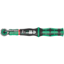 Llave dinamométrica con mecanismo de sobre-resbalo. Tan pronto se alcanza el valor de par de giro preajustado la herramienta ya no puede ser utilizada para apretar de manera forzada. Así queda excluido que se aplique un valor de par demasiado alto. Área de medición de 2 a 12 Nm para un apriete controlado hacia la derecha y la izquierda. Un ajuste y un aseguramiento fácil del valor de preajuste: con el encastre audible y palpable cuando se alcanzan los valores de escala, se facilita de forma adicional el ajuste seguro del valor dinamométrico deseado. Con la función Torque Lock para usarla como carraca estándar sin función dinamométrica. De esta forma también puede utilizarse para aplicaciones de ángulos giratorios. El ángulo de retorno es de tan solo 5°, así que la carraca también puede ser utilizada en situaciones de trabajo de gran estrechez.