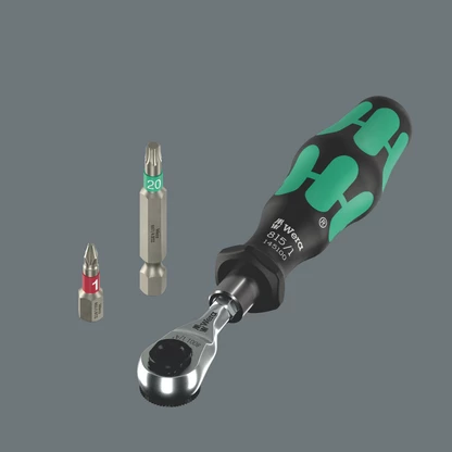 Por medio de su conexión hexagonal exterior de 1/4", la carraca de puntas Zyklop 8011 puede utilizarse para la toma hexagonal interior de 1/4" del porta-puntas 815/1. La carraca de puntas Zyklop es adecuada para puntas de 1/4".