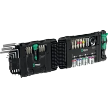 Un juego de herramientas de 22 piezas (porta-puntas Kraftform Micro 1014, puntas con arrastre hexagonal exterior de 4 mm). Se encuentran alojadas de forma supercompacta en el Tool-Check Modular.