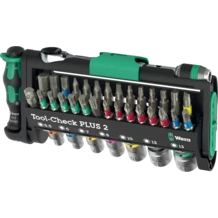 El juego ofrece 39 herramientas en una caja extremamente compacta. El Tool-Check ha sido fabricado de un material sintético de alta calidad, garantiza un alojamiento sumamente ordenado, un acceso rápido a la herramienta necesaria, así como un transporte sin pérdidas.