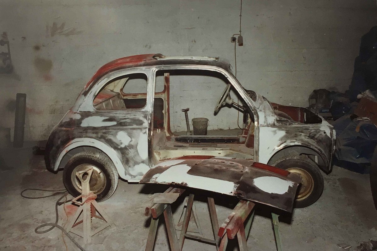 Su Fiat 500, que compró a principios de los años 90, fue reconstruido desde cero. El motor Bambino de 650 cc ya entrega 5 caballos de fuerza más desde fábrica que el motor estándar de 18 CV. Con la puesta a punto del motor, ahora 32 caballos de fuerza trabajan en la parte trasera del pequeño italiano.