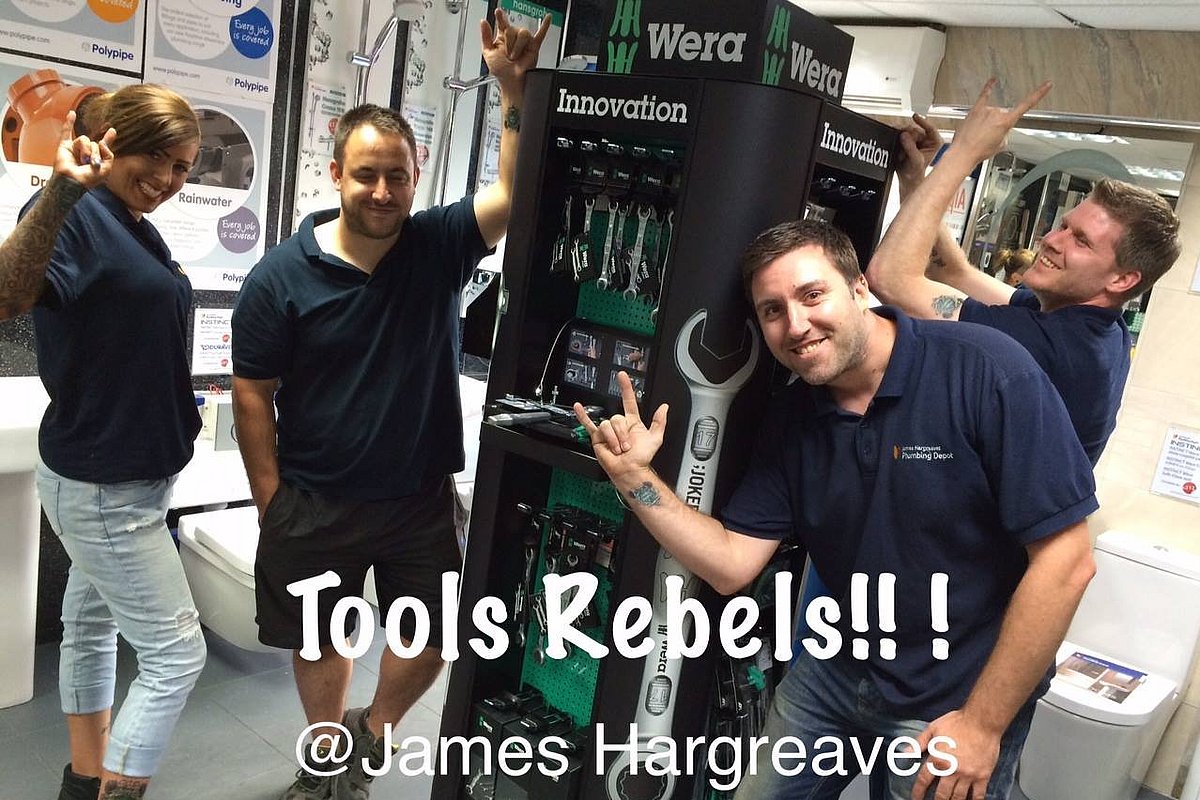 En julio de 2015, el equipo de Wera entró en la sucursal de Osset para instalar su Innovation Tower y, con gran expectativa, convertir a los vendedores Gav, Martin, Gary y Laura en Tool Rebels!
